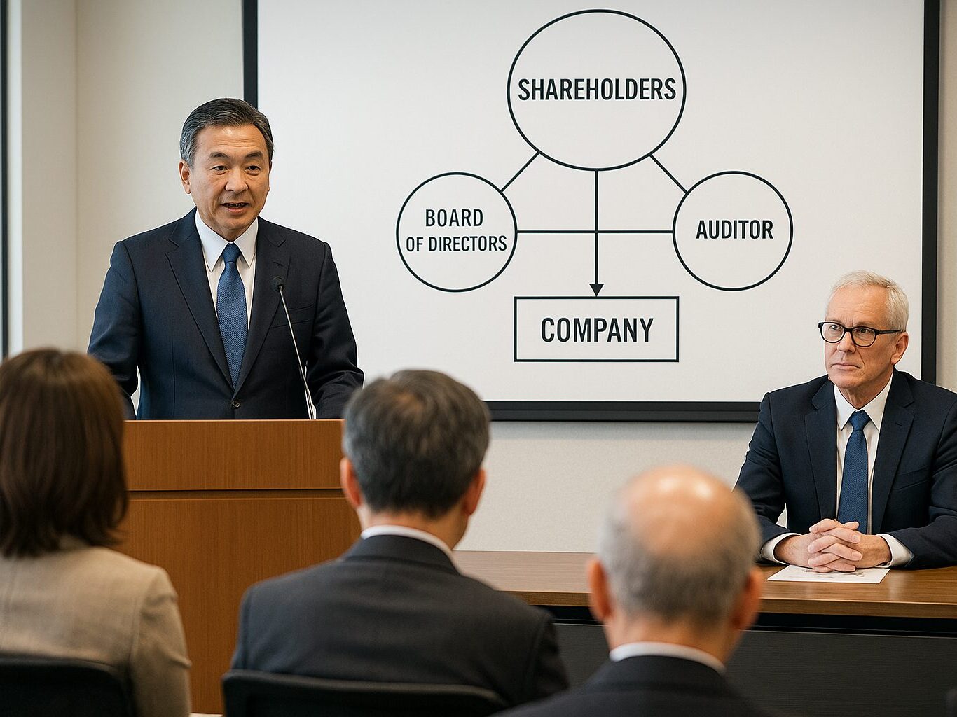 株式会社は「出資者(株主)」が資金提供し、「取締役」が事業運営を担う仕組みです。株主は会社の所有者として議決権や配当を得ます。